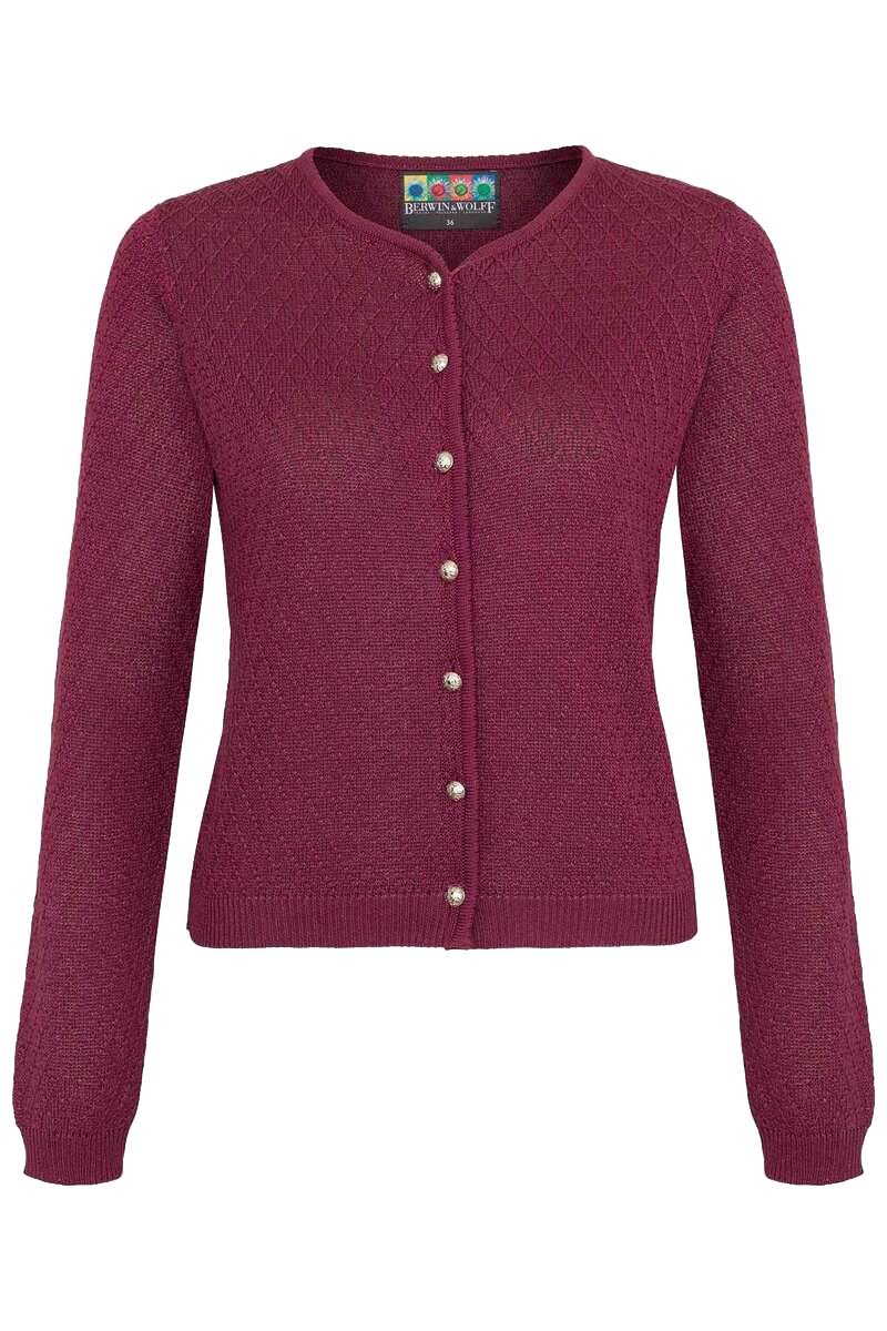 Diese schicke lila Dirndljacke in der offiziellen Farbe "Beere" ist schön leicht und wärmt durch den Polyacryl-Anteil im Gewebe trotzdem. Der Rest des Gewebes besteht aus Baumwolle und somit aus reiner Naturfaser, was für sehr angenehmen Tragekomfort sorgt.Diese schöne Strickjacke mit dem eingestrickten Karomuster und den schönen silberfarbenen Knöpfen lässt sich wunderbar zu Jeans, Rock oder kurzer Hose, gerade an lauen Sommerabenden, oder auch wunderbar in der Übergangszeit, kombinieren. Im Winter ist es sehr angenehm, dieses Jäckchen unter einer warmen Daunenjacke zu tragen, so hat man viel Bewegungsfreiheit und die Daunenjacke wärmt so stark, dass auch eine leichte Strickjacke darunter völlig ausreicht.Mit dieser Strickjacke, die Sie sicher zu vielen Gelegenheiten anziehen werden und die wunderbar bequem zu tragen ist, werden Sie sicher viele Jahre Freude haben.Die Rückenlänge in Größe 36 beträgt 51 cm.