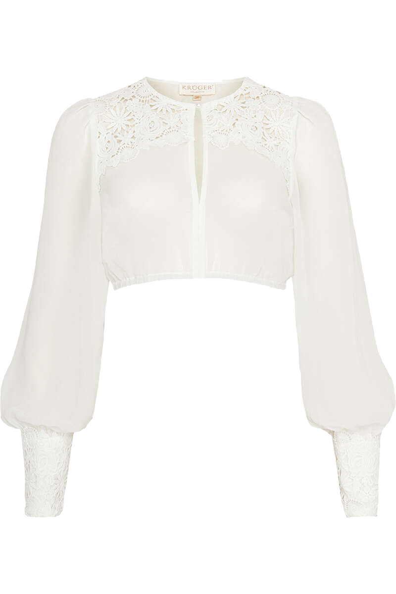 Dirndl-Bluse transparent mit Spitzenbesatz langarm