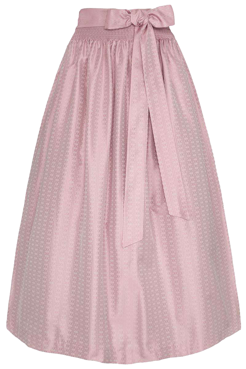 Eine wunderschöne, 90 cm lange Dirndlschürze in schimmerndem Altrosa von Mia san Tracht. Das schlichte Streifenmuster und die klassisch schlichte Ausführung machen sie zu einem perfekten Accessoire für ein Festtagsdirndl. Gehalten wird die Schürze von 5 cm breiten Schürzenbändern. Gefertigt ist die Schürze aus Polyester. Die Schürze kann selbst individuell gekürzt werden.