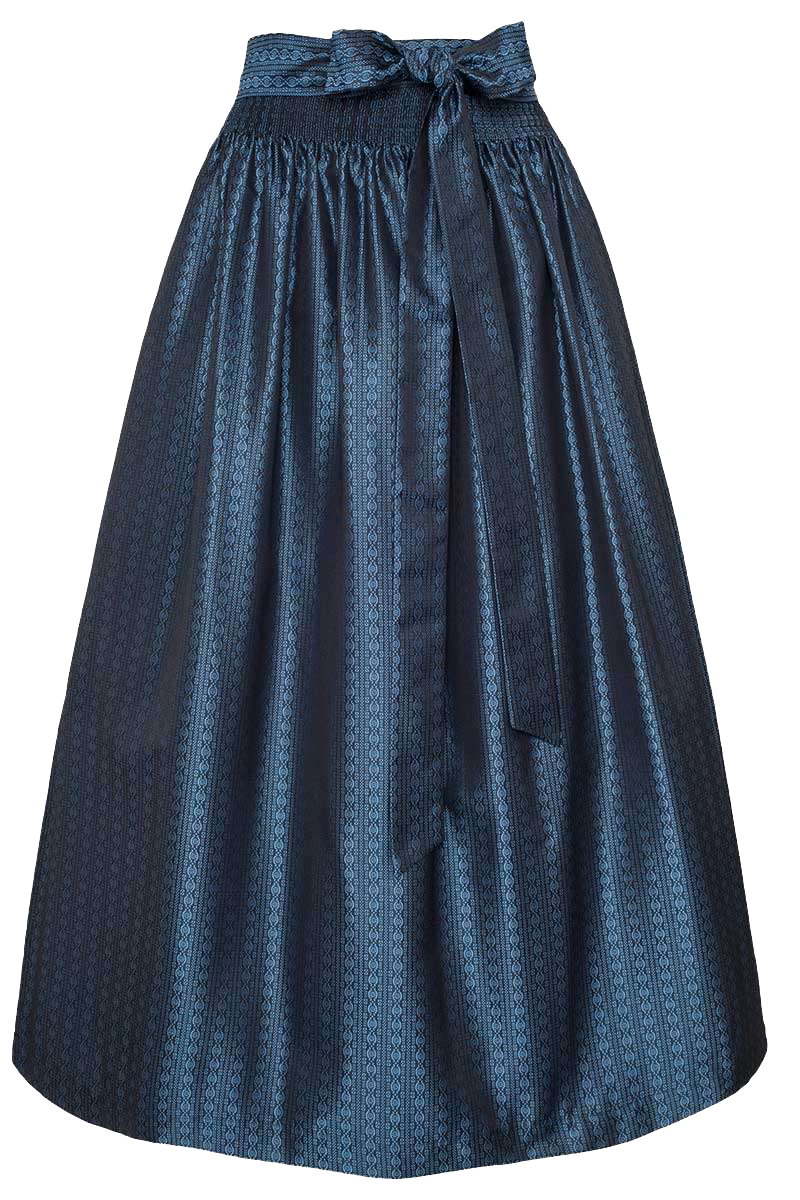 Eine wunderschöne, 90 cm lange Dirndlschürze in schimmerndem Marineblau von Mia san Tracht. Das schlichte Streifenmuster und die klassisch schlichte Ausführung machen sie zu einem perfekten Accessoire für ein Festtagsdirndl. Gehalten wird die Schürze von 5 cm breiten Schürzenbändern. Gefertigt ist die Schürze aus Polyester. Die Schürze kann selbst individuell gekürzt werden.