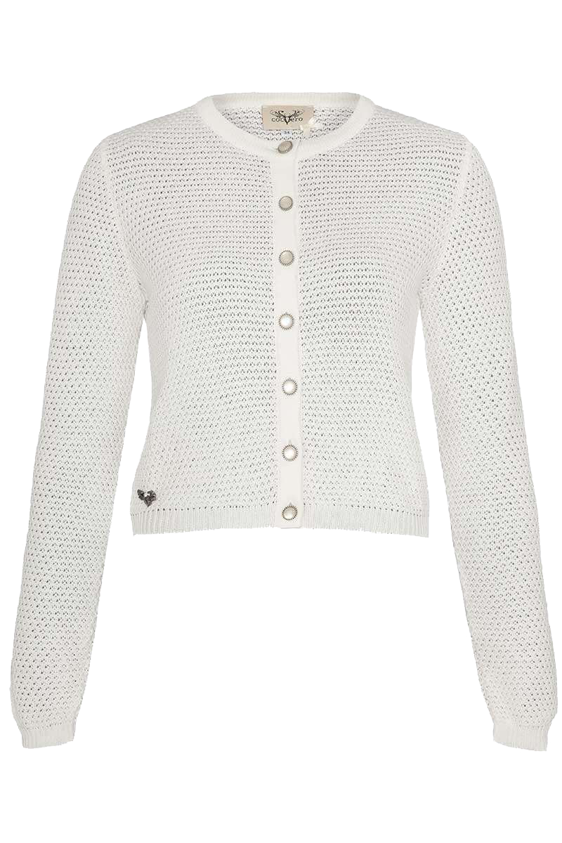 Die kuschlige Kaschmir-Dirndljacke MINZI von CocoVero Trachten ist der perfekte Begleiter an kühlen wie an sommerlichen Tagen und hebt sich besonders durch die elegante Farbnote Offwhite hervor. Die Farbe offwhite passt wunderschön zu all unseren Hochzeits-und Brautdirndln. Durch den taillierten Schnitt mit der hoch geschlossenen Knopfleiste, dem Rundkragen und dem kleinteiligen Strickmuster sitzt sie perfekt auf jedem Dirndl. Besonders edel sind die seidig schimmernden farblich angestimmten Knöpfe mit silberfarbiger Metalleinfassung. 45 cm Rückenlänge, 61 cm Armlänge bei Größe 34.