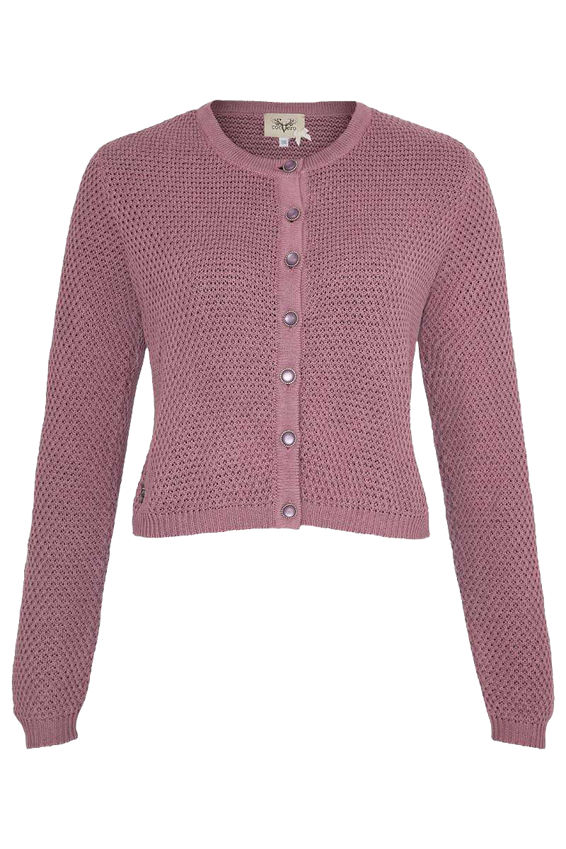 Die kuschlige Kaschmir-Dirndljacke MINZI von CocoVero Trachten ist der perfekte Begleiter an kühlen wie an sommerlichen Tagen und hebt sich besonders durch die elegante Farbnote Dusty Rose hervor. Durch den taillierten Schnitt mit der hoch geschlossenen Knopfleiste, dem Rundkragen und dem kleinteiligen Strickmuster sitzt sie perfekt auf jedem Dirndl. Besonders edel sind die seidig schimmernden farblich angestimmten Knöpfe mit silberfarbiger Metalleinfassung. 45 cm Rückenlänge, 61 cm Armlänge bei Größe 34.