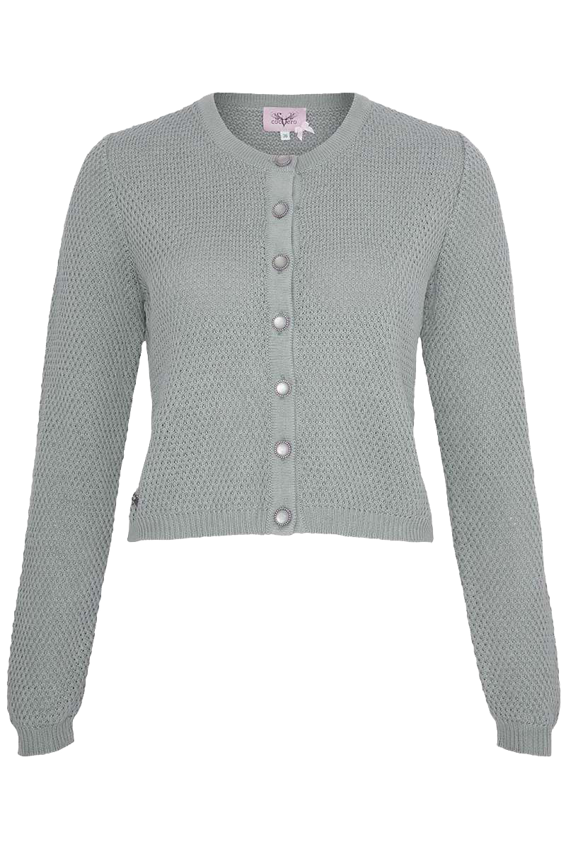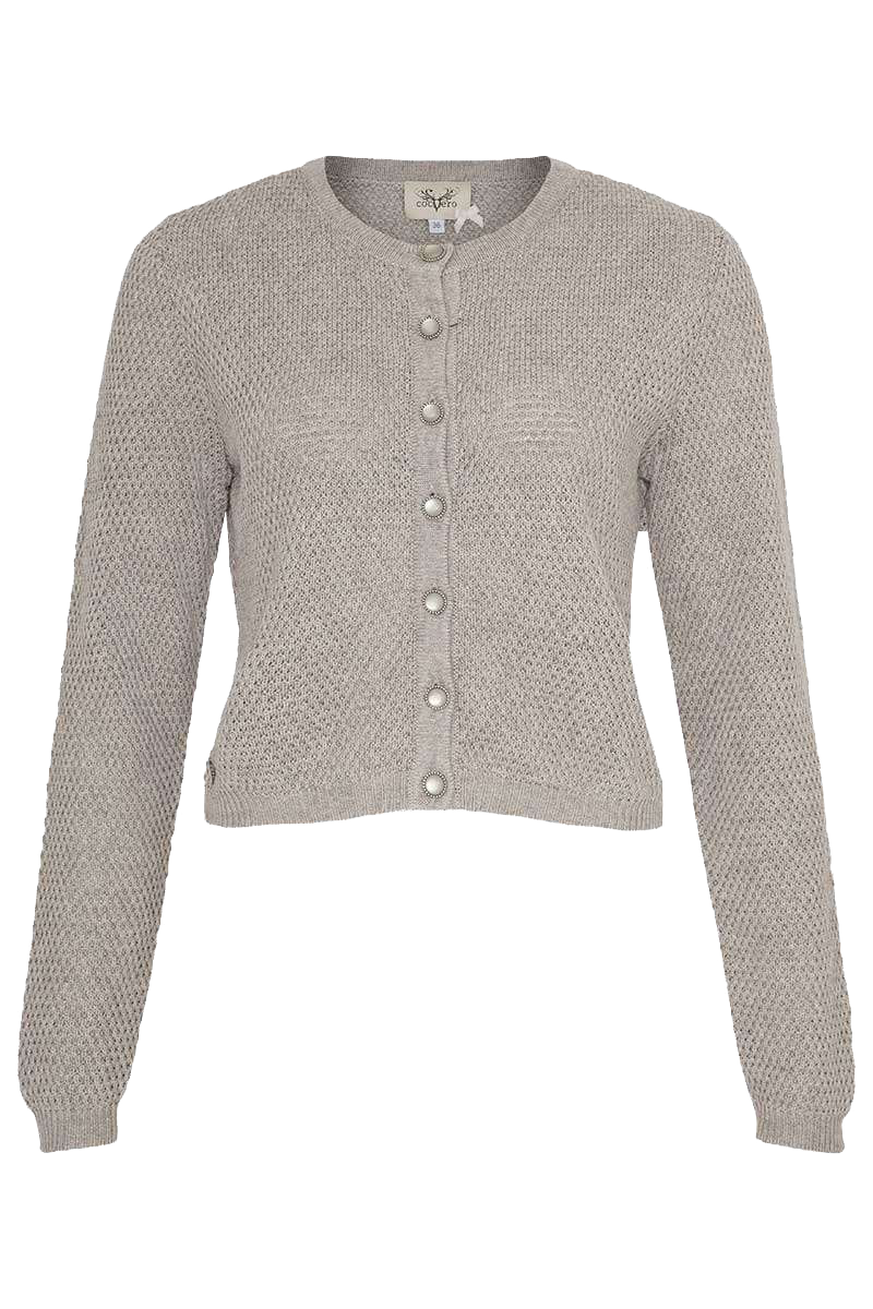 Die kuschlige Kaschmir-Dirndljacke MINZI von CocoVero Trachten ist der perfekte Begleiter an kühlen wie an sommerlichen Tagen und hebt sich besonders durch die elegante Farbnote silver grey hervor. Durch den taillierten Schnitt mit der hoch geschlossenen Knopfleiste, dem Rundkragen und dem kleinteiligen Strickmuster sitzt sie perfekt auf jedem Dirndl. Besonders edel sind die seidig schimmernden farblich angestimmten Knöpfe mit silberfarbiger Metalleinfassung. 45 cm Rückenlänge, 61 cm Armlänge bei Größe 34.