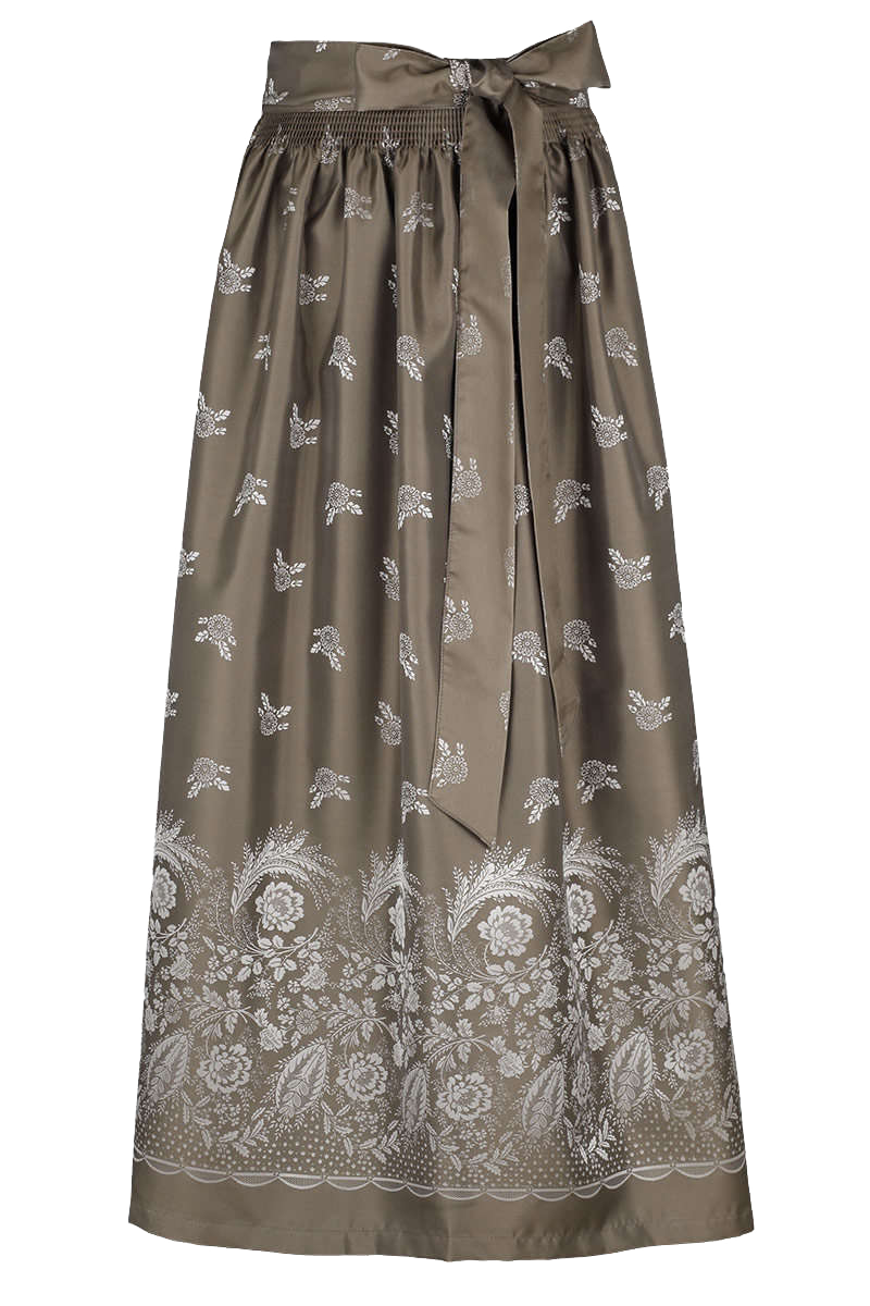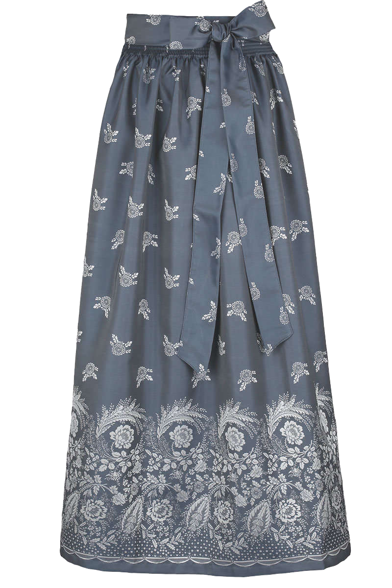 Produktinformationen:Diese auffällige, lange Dirndlschürze ist aus schillerndem Stoff gearbeitet. Die Schürze ist Grau gehalten und wird von einem Blumenmuster geziert das am oberen Rand locker beginnt und sich zum unteren Rand hin verdichtet.