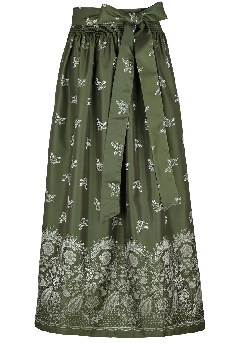 Produktinformationen:Diese auffällige, lange Dirndlschürze ist aus schillerndem Stoff gearbeitet. Die Schürze ist Grün gehalten und wird von einem Blumenmuster geziert das am oberen Rand locker beginnt und sich zum unteren Rand hin verdichtet.