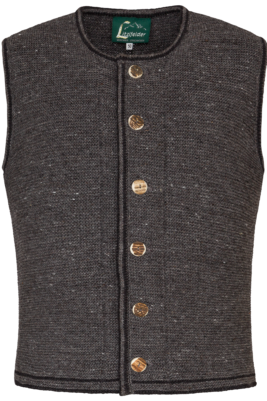 Diese melierte Herren Trachtenweste aus 100 % feinster Schurwolle von Litzlfelder ist ein echtes Schmuckstück für Liebhaber traditioneller Trachtenmode. Hochwertig verarbeitet und mit viel Liebe zum Detail in Bayern entworfen und gefertigt, steht sie für Qualität, Stilbewusstsein und Handwerkskunst. Der gerade, klassische Schnitt verleiht der ärmellosen Jacke eine zeitlose Eleganz, die sowohl zu festlichen Anlässen als auch im Alltag überzeugt.