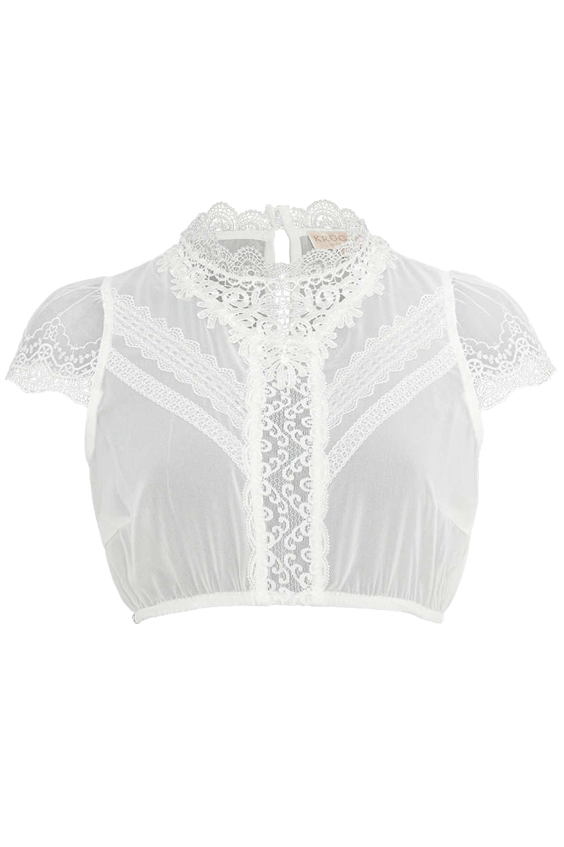 Hochgeschlossene Dirndlbluse Spitzenstehkragen