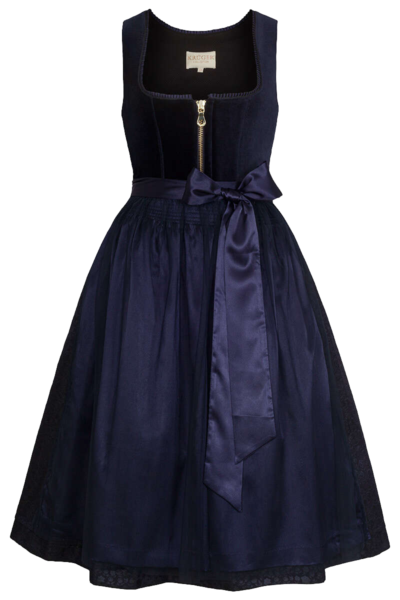 Dieses unglaublich schicke, elegante und topmodische Dirndl der Marke Krüger Collection in der Farbe dunkelblau hat ein Oberteil aus Samt, das elegant und modern zugleich wirkt. Der schicke goldfarbene Reißverschluss auf der Brust betont den topmodernen Style. Die blau glänzend schimmernde Schürze passt perfekt zu dem samtigen Oberteil und lässt dieses Dirndl noch edler wirken.Das Futter besteht zu 100% aus Baumwolle und somit aus reiner Naturfaser. Dies macht das Dirndl sehr atmungsaktiv und damit unglaublich angenehm zu tragen. Auch der Oberstoff besteht zu 37% aus Baumwolle und somit aus Naturfaser.Wenn Sie ein beeindruckend elegantes Dirndl suchen, das nicht nur zum Oktoberfest einen umwerfend schicken Eindruck macht, sondern mit dem Sie auch bei privaten Festen und Tanzabenden im Alltag, beruflichen Ausflügen oder im Büro immer eine super Figur machen und in dem Sie sich zusätzlich unglaublich wohl fühlen, dann ist dies das perfekt geeignete Dirndl für Sie.Die Rocklänge in Größe 36 beträgt 70 cm.