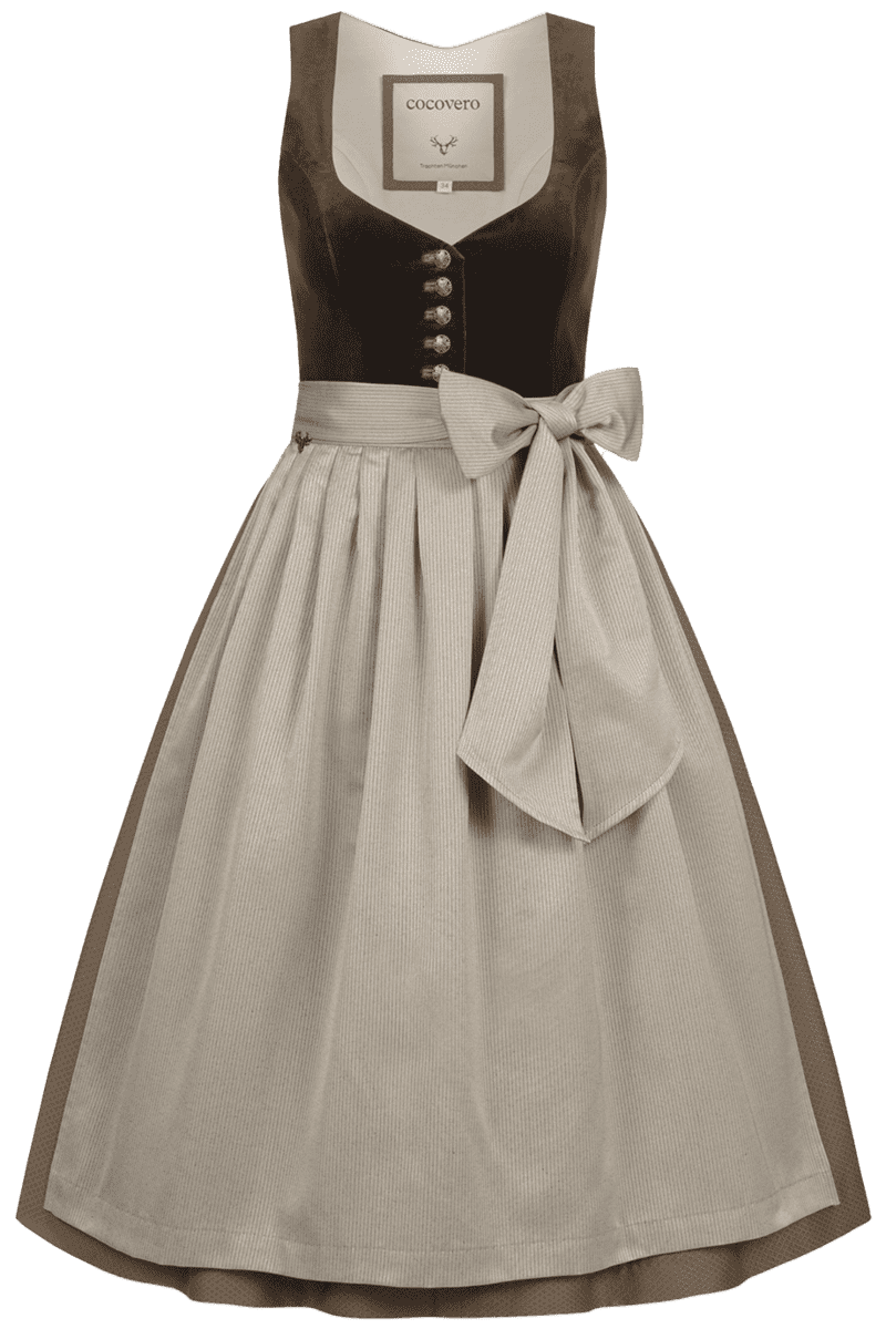 JANNI von CocoVero ist ein echtes Trend Dirndl. Ein absoluter Blickfang sind die perfekt aufeinander abgestimmten Grüntöne des Midi-Dirndls, die eine besondere Eleganz ausstrahlen. Das Highlight ist das edel schimmernde, hochwertige Mieder in dunkelgrün, aus weichem Samt in 100% Baumwolle aus Italien. Mit wunderschönen goldenen und mit Blumen verzierten Knöpfen wird das Mieder geschlossen. Der herzförmige Ausschnitt zaubert ein schönes Dekolleté und die traditionellen Wiener Nähte sorgen für eine feminine Silhouette. Das hochwertige Innenfutter aus Bio-Baumwolle mit weicher Viskose, ist auch an wärmeren Tagen angenehm zu tragen, da es atmungsaktiv ist. Der grüne Rock ist rundum in Falten gelegt, und besticht durch sein dezentes Jaquard-Muster, das sich perfekt in das Gesamtbild des Dirndls einfügt und für einen stilvollen Auftritt in Tracht sorgt. Zwei praktische versteckte Einschubtaschen, lassen Sie immer die wichtigsten Dinge sicher verstauen. Die schlichte Eleganz spiegelt sich auch in der dezent gestreiften Dirndlschürze wider. Das ca. 12,5 cm breite Schürzenband kann zu einer schönen großen Schleife gebunden werden und macht das CocoVero Dirndl unverwechselbar. Das CocoVero Emblem ist auf der Schürze und am Rückenteil angebracht. Genügend Nahtzugabe im Mieder ermöglicht es, das Dirndl um je eine Größe anzupassen. In der Größe 34 beträgt die Rocklänge 75 cm. Das Dirndl wurde in Europa hergestellt.