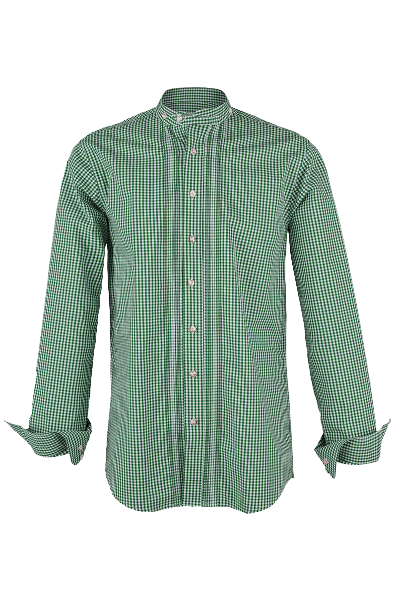 Modisches Trachtenhemd in angesagtem Vichy-Karo mit Stehbundkragen.Karogröße: 0,3 x 0,3 cm Geschlossen wird das Langarmhemd mit Knöpfen in Hirschhornoptik. Links und rechts neben der Knopfleiste sind jeweils 6 feine Biesen eingearbeitet.Dieses Hemd kann wunderbar zur Jeans kombiniert werden, es sieht aber auch zur Lederhose gut aus!