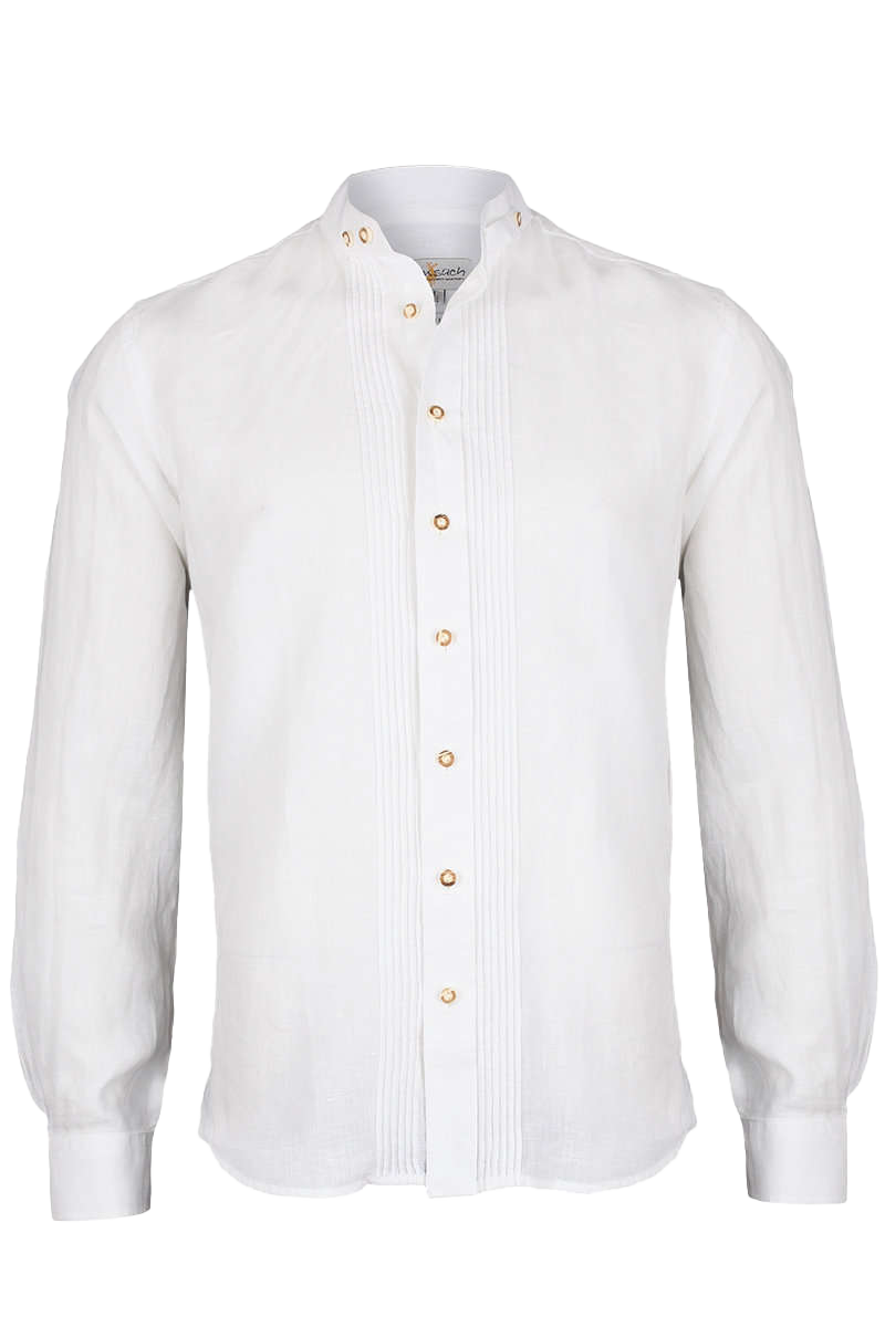 Produktinformationen:Dieses traditionelle Leinenhemd der Marke Almsach ist in Weiß gehalten. Geschlossen wird das Hemd mit Knöpfen in Hirschhornoptik. Links und rechts der Knopfleiste sind mehrere Biesen eingearbeitet.Schnitt:Das Trachtenhemd ist mit einem Stehkragen ausgestattet. Das Hemd ist figurbetont geschnitten.