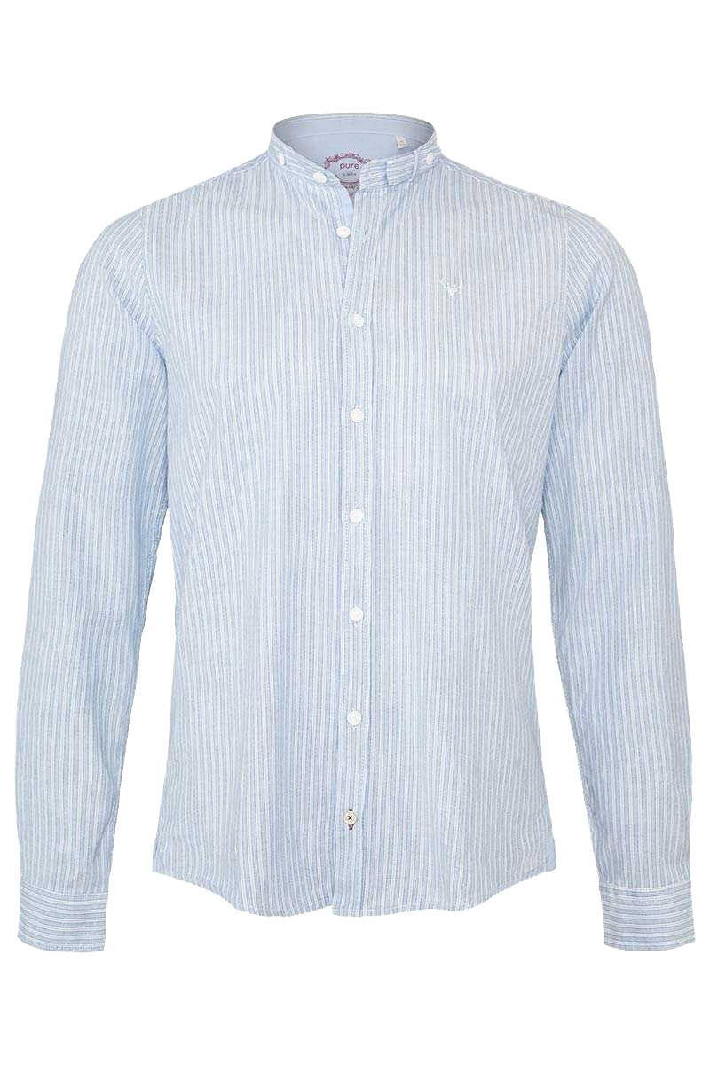Ein edles Trachtenhemd von pure, das mit den nostalgischen Knöpfen und dem hellblauen Streifenmuster einen unverwechselbaren Vintage-Look ausstrahlt. Dieser wird noch durch den Stehkragen mit der knöpfbaren Lasche verstärkt. Das Slim-Fit-Design und die Beimischung von Elasthan zur Baumwolle sorgen für einen körpernahen Sitz.