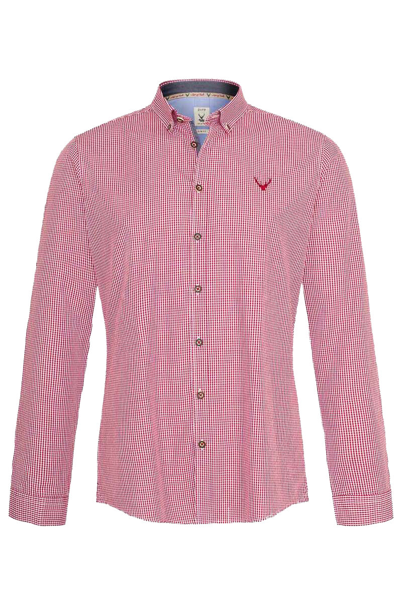 Dieses fesche Trachtenhemd von Pure in Rot ist ein Allrounder für Tracht und Alltag. Mit diesem Hemd kann man nichts falsch machen!Die langen Ärmel lassen sich wunderbar hochkrempeln. Der Trachtenlook wird durch die Knöpfe in Hornoptik erreicht. Das Hemd ist figurbetont im Slim-Fit geschnitten.Das Material aus reiner Baumwolle verspricht einen hohen Tragekomfort.
