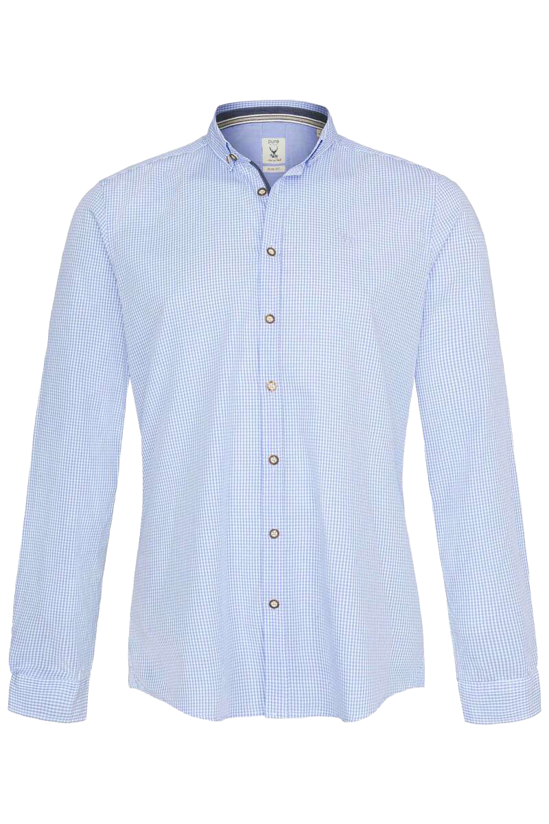 Dieses fesche Trachtenhemd von Pure in Hellblau ist ein Allrounder für Tracht und Alltag. Mit diesem Hemd kann man nichts falsch machen!Die langen Ärmel lassen sich wunderbar hochkrempeln. Der Trachtenlook wird durch die Knöpfe in Hornoptik erreicht. Das Hemd ist figurbetont im Slim-Fit geschnitten.Das Material aus reiner Baumwolle verspricht einen hohen Tragekomfort.