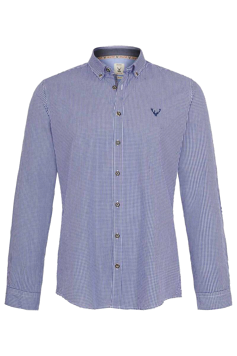 Dieses fesche Trachtenhemd von Pure in Dunkelblau ist ein Allrounder für Tracht und Alltag. Mit diesem Hemd kann man nichts falsch machen!Die langen Ärmel lassen sich wunderbar hochkrempeln. Der Trachtenlook wird durch die Knöpfe in Hornoptik erreicht. Das Hemd ist figurbetont im Slim-Fit geschnitten.Das Material aus reiner Baumwolle verspricht einen hohen Tragekomfort.