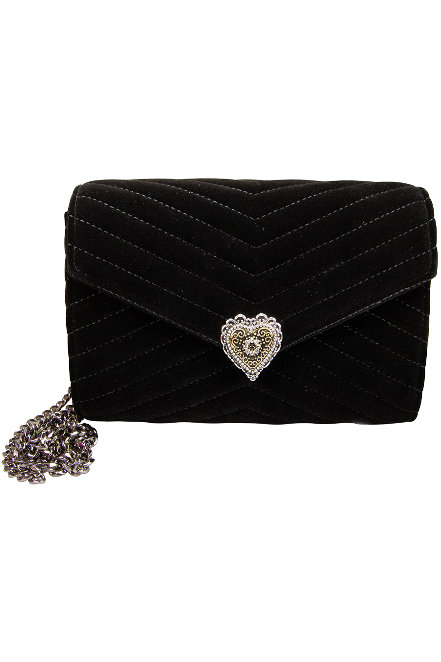 Diese stilvolle Trachten-Clutch von Alpenflüstern ist das perfekte Accessoire zum Dirndl, Trachtenrock oder zur Trachtenjeans. Aus edlem Samt gefertigt, begeistert sie mit einem fest angebrachten, zweifarbigen Trachtenherz-Motiv mit funkelndem Strassstein – ein eleganter Blickfang mit traditionellem Charme.