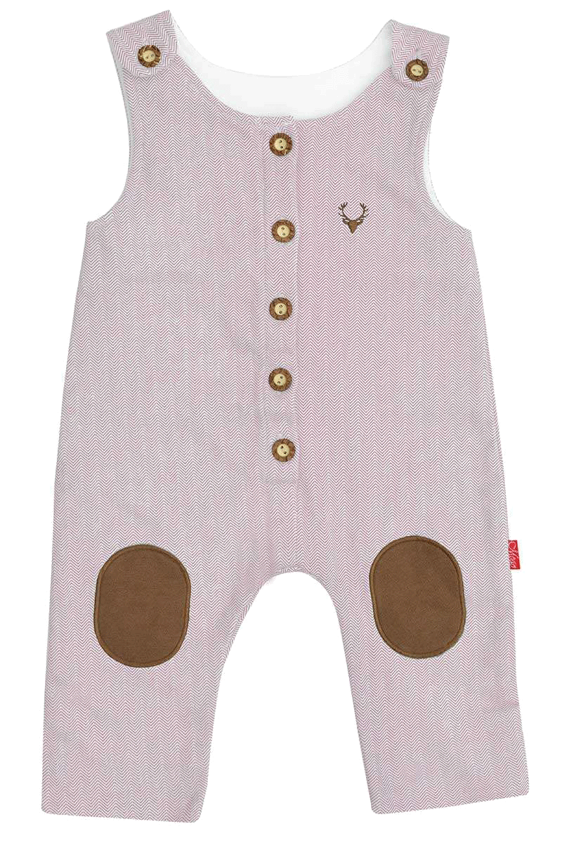 Für unsere kleinen Trachtlerinnen und Trachtler ist diese süsse rosa Babylatzhose mit Fischgrät-Muster eine süsse Alternative zur Lederhose. Wer ein besonderes Geschenk zur Geburt, zur Taufe mit alpinen oder bayrischen Alpikationen sucht, ist mit dieser Babylatzhose richtig aufgehoben. Die Latzhose ist aus 100% sehr weicher Baumwolle. Die Baumwolle ist etwas dehnbar und gibt leicht nach. Am Rückenteil befindet sich ein Hirschstick. Durch die lange Knopfleiste im Vorderteil lässt sich die Latzhose kinderleicht an- und ausziehen. Mit 2 Knöpfen an den Trägern kann die Länge verstellt werden, somit hat ihr Baby lange Freude an der Latzhose.