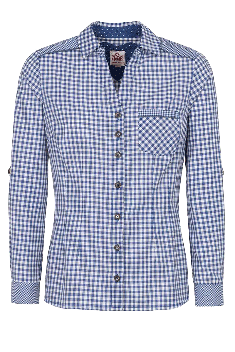 Produktinformationen:Diese süße, blau-weiß karierte Bluse der Marke Spieth & Wensky verfügt über ein paar niedliche Details. Die langen Ärmel sind am Abschluss mit Knöpfen in Hirschhornoptik versehen. Die Knopfleiste ist ebenfalls mit Knöpfen in Hirschhornoptik versehen. Die Ärmelmanschetten, der Abschluss der Brusttasche, sowie Applikationen auf dem Schultersattel und ein Teil des Kragens sind aus kleinkariertem, blau-weißen Stoff gearbeitet. Auf der Brusttasche ist das Karomuster gedreht. Im Rücken auf der Innenseite ist ein Herz mit dem Etikett angebracht. Dieses Herz ist als blaue Stickerei auf der Rückseite sichtbar. Die Ärmel können hochgekrempelt werden und mittels zwei Knöpfen in Hirschhornoptik befestigt werden. In den Seitennähten der Bluse ist jeweils eine Kordel eingearbeitet mit der die Bluse leicht gerafft werden kann. Schnitt:Die Abnäher der Bluse garantieren einen taillierten Sitz. Die Bluse ist mit einem klassischen Kragen ausgestattet. Zudem verfügt die Bluse über eine Brusttasche.