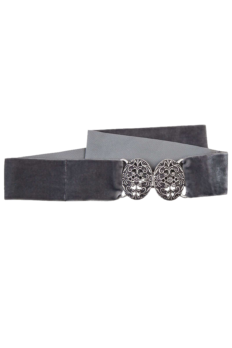 Ein eleganter Trachtengürtel in Grau aus Samt-Stretch von Berwin & Wolff. Der Gürtel ist ca. 3,8 cm breit. Geschlossen wird er mit einer hübschen Metallschließe in Altsilber. Das dehnbare Gewebe verleiht ihm einen hohen Tragekomfort.