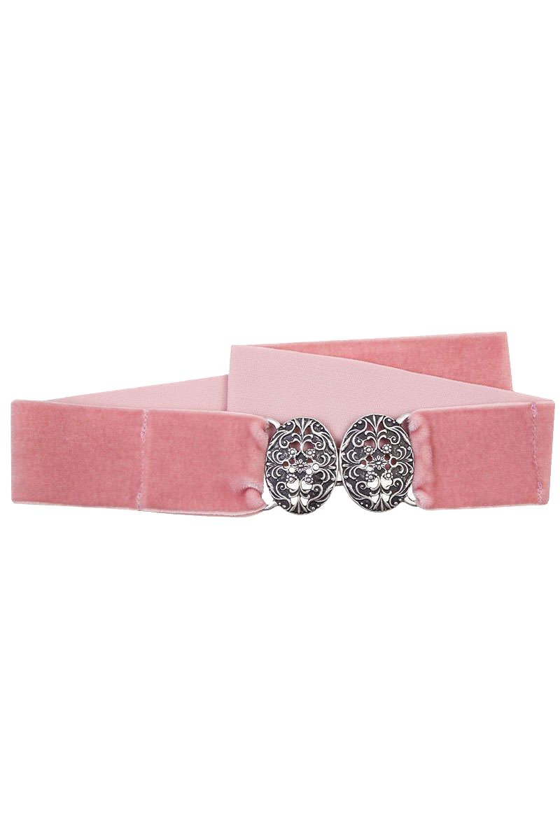 Ein eleganter Trachtengürtel in Rosa aus Samt-Stretch von Berwin & Wolff. Der Gürtel ist ca. 3,8 cm breit. Geschlossen wird er mit einer hübschen Metallschließe in Altsilber. Das dehnbare Gewebe verleiht ihm einen hohen Tragekomfort.