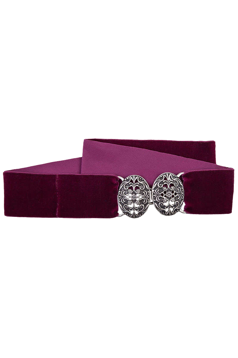 Ein eleganter Trachtengürtel in Weinrot aus Samt-Stretch von Berwin & Wolff. Der Gürtel ist ca. 3,8 cm breit. Geschlossen wird er mit einer hübschen Metallschließe in Altsilber. Das dehnbare Gewebe verleiht ihm einen hohen Tragekomfort.