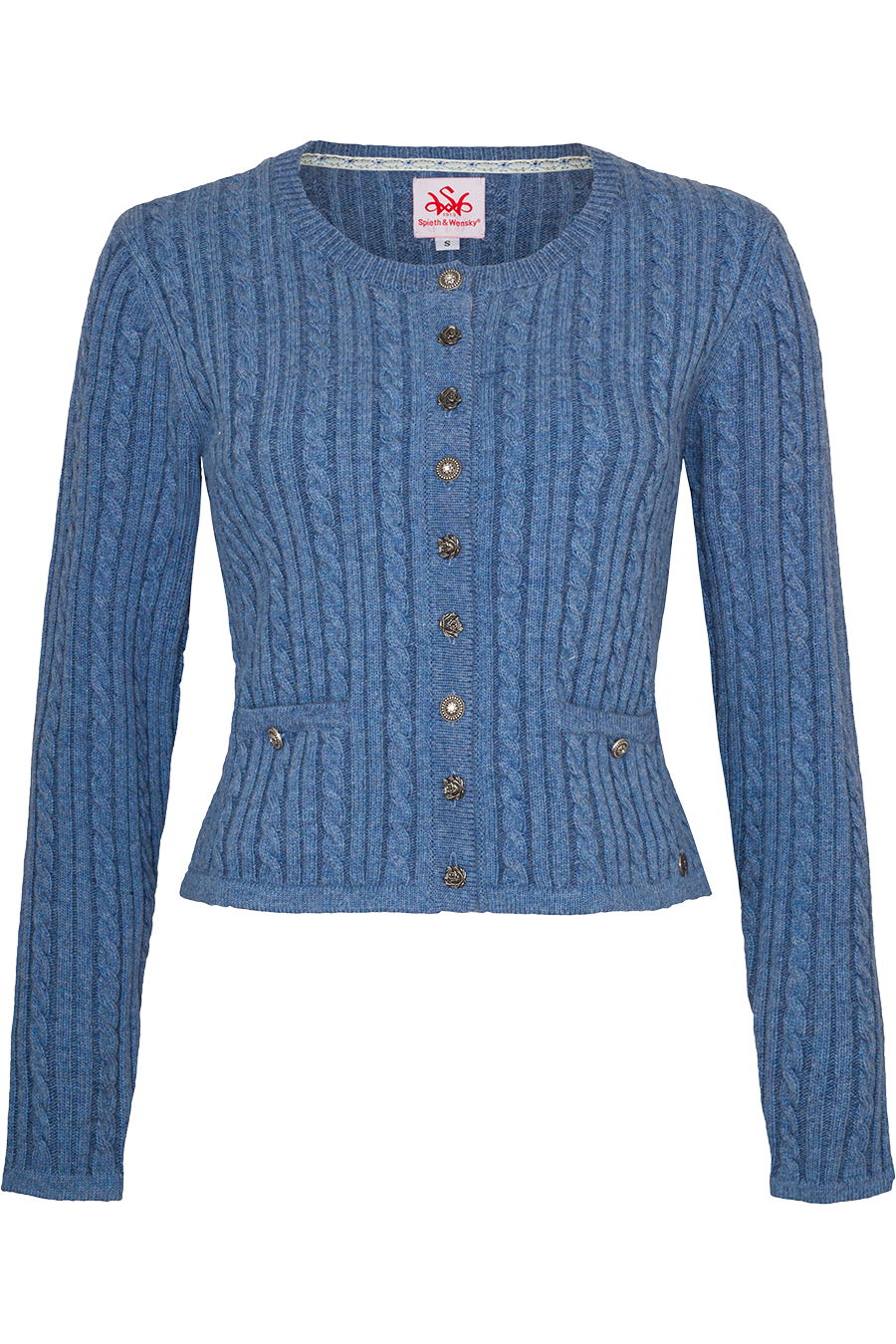 Ein echtes Schmuckstück für kühle Trachtentage: Die Damen-Dirndljacke FUSCHL von Spieth & Wensky vereint traditionellen Charme mit liebevollen Details. Mit edlem Zopfstrickmuster, rundem Ausschnitt und Rippbündchen an den Saumabschlüssen. Der taillierte Schnitt verleiht eine klassische, feminine Silhouette.
