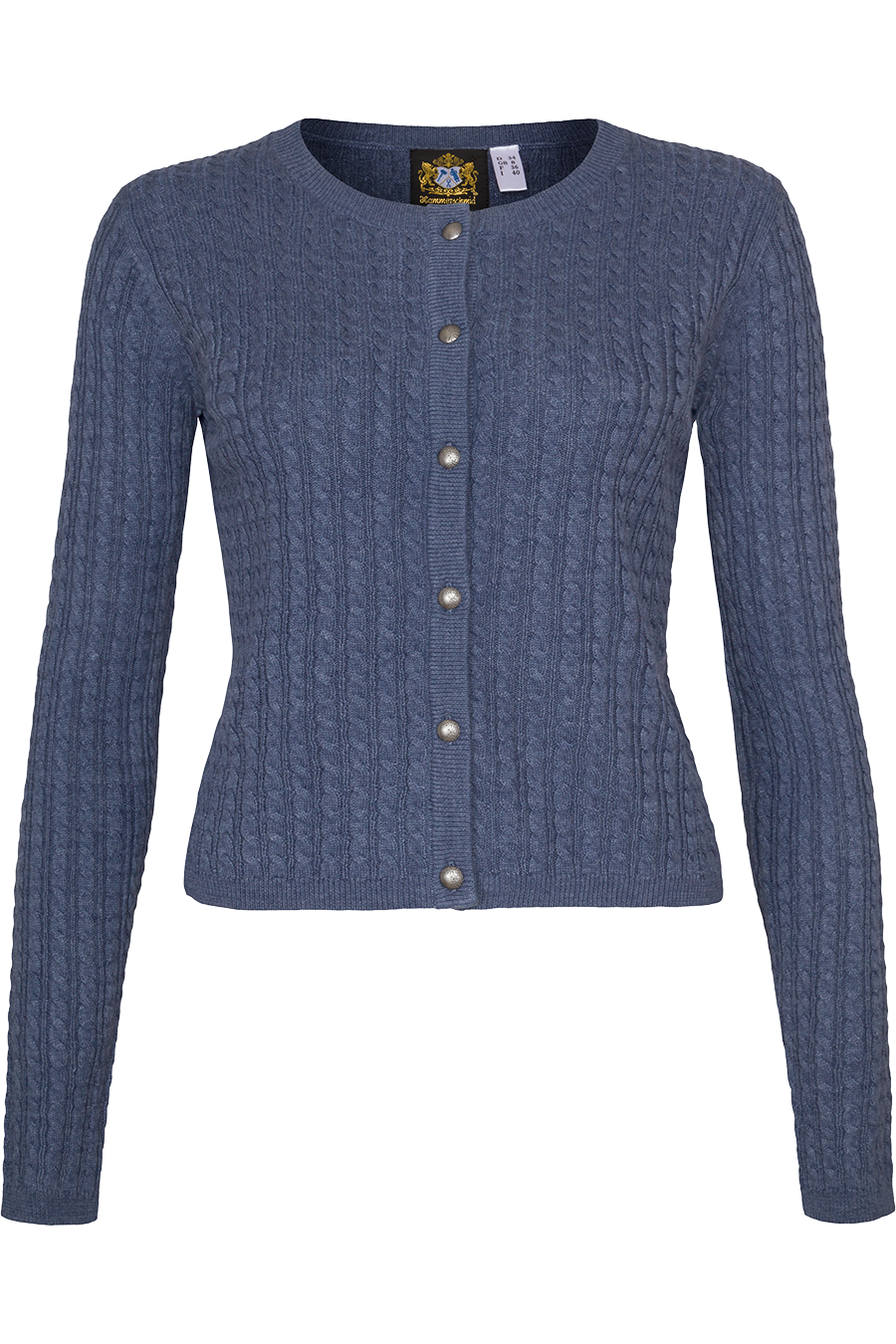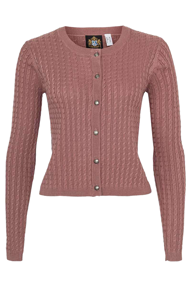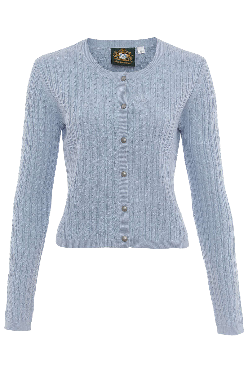 Die Strickjacke REIT von Hammerschmid vereint traditionelle Elemente mit zeitloser Eleganz. Das gleichmäßige Zopfmuster verleiht der Jacke eine strukturierte, klassische Optik. Glatt gestrickte Abschlüsse an Kragen, Ärmeln und Saum setzen dezente Kontraste und runden das Design harmonisch ab.