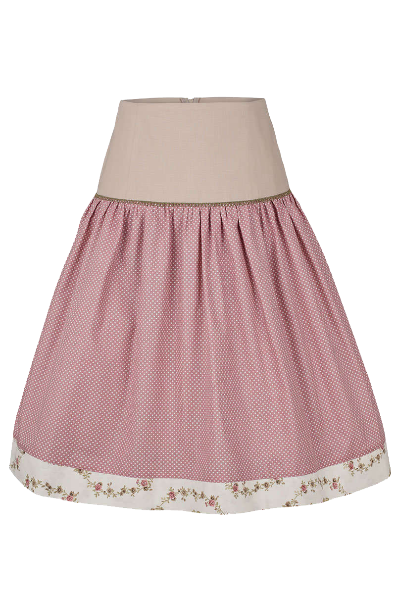 Produktinformationen:Die verschiedenen Rosatöne mit denen bei diesem Trachtenrock gespielt wird machen ihm zum perfekten Sommerrock. Der breite Bund des Rocks ist in Rosa gehalten und mit einer kleinen Bordpre vom Rockteil abgetrennt. Der Rockteil ist in Altrosa gehalten und mit weißen Punkten geziert. Er ist am Bund oben gerafft. Ein weißer Streifen mit Rosenranken schließt am Saum ab. Ausstattung:Der Rock wird mit einem nahtverdeckten Reißverschluss in der hinteren Mitte geschlossen. Der Rock ist ca. 60 cm lang.Was macht diesen Rock zu Ihrer Lieblingstracht?Dadurch, dass der Rock aus 100 % Baumwolle gearbeitet ist, hat er einen sehr hohen Tragekomfort und ist trotzdem pflegeleicht. Diese Lieblingsstücke lassen sich hierzu perfekt kombinieren:Zu diesem Rock empfehlen wir Ihnen eine Trachtenbluse oder ein Trachtenshirt. Auch unsere verspielten Trachtenchucks passen zu diesem Rock gut. Zu diesen Anlässen können Sie diese Tracht perfekt tragen:Diesen Rock können Sie vielseitig kombinieren. Er passt zum perfekten Sommeroutfit und kann bei festlichen Anlässen als auch im Alltag getragen werden.