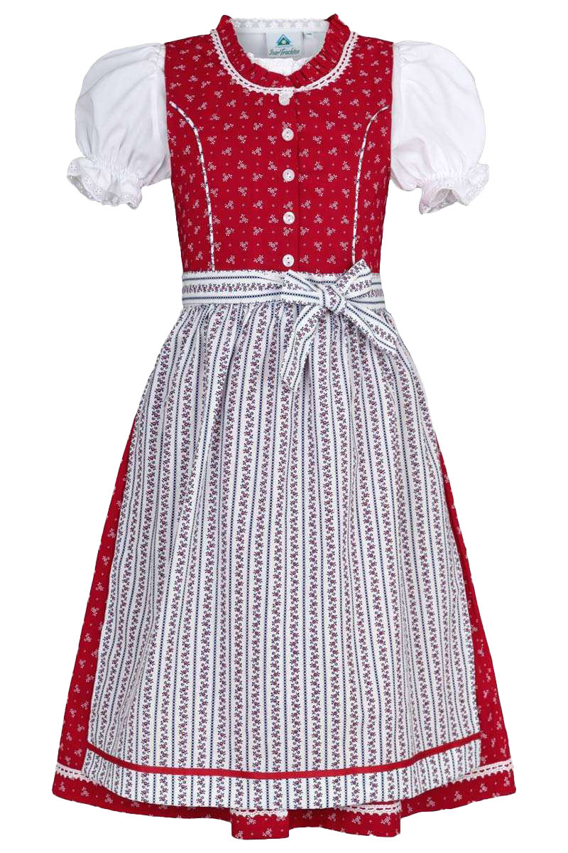 Für unsere kleinen Trachten-Prinzessinnen ist dieses rote Dirndl und die weiße Bluse mit Puffärmel genau das richtige um sich richtig schick zu fühlen.Das Dirndlkleid ist durchgängig mit Knöpfen in Perlmuttoptik geschlossen und hat am Ausschnitt einen Saum und zwei Wiener Nähte aus demselben Streublumenstoff wie die Schürze. Die Bluse ist mit Spitzen am Ausschnitt und den Ärmeln besetzt, die mit Gummizügen gerafft sind. Sowohl Kleid und Schürze aus 100 % Baumwolle als auch die Bluse aus Mischgewebe (67 % Polyester, 33 % Baumwolle) sind sehr pflegeleicht und angenehm zu Tragen.