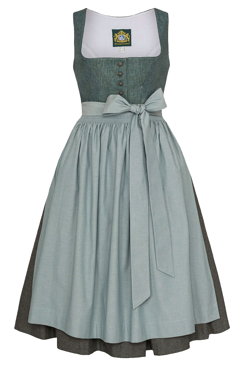Das wunderschöne 80 cm lange Dirndl SCHLIERSEE in der Farbe türkis von der Marke Hammerschmid lässt Sie strahlen. Ob zu einem festlichen Anlass oder zum Volksfestbesuch, dieses Dirndl passt immer. Das hochwertige Mieder besteht bei diesem Modell aus 100% Leinen und überzeugt durch sein schlichtes Jaquard-Muster und verleiht dem Dirndl einen traditionellen Charme. Der runde Ausschnitt sowie die Wiener Nähte sorgen für einen figurbetonten Schnitt. Eine Besonderheit sind die altsilberfarbenen halbrunden Knöpfe, die mit floralen Ornamenten verziert sind. Das Futter des Oberteils besteht aus reiner Baumwolle und ist daher besonders atmungsaktiv und hautsympathisch. Der in Falten gelegte Rock aus angerauter, weicher Baumwolle besticht durch seine edle, leicht melierte Optik und rundet das hochwertige Gesamtbild des Trachtenlooks perfekt ab. Praktisch sind die seitlichen Eingrifftaschen, die Platz für die wichtigsten Dinge bieten. Die leicht melierte, türkisfarbene Schürze aus Naturfaser passt sich dem eleganten Design an. Das Schürzenband ist ca. 6 cm breit und kann zu einer hübschen Schleife gebunden werden. Fadenverdickung und Noppen gehören auf Grund des hochwertigen Materials zum natürlichen Erscheinungsbild von diesem Artikel. Die Rocklänge in Größe 36 beträgt 80 cm