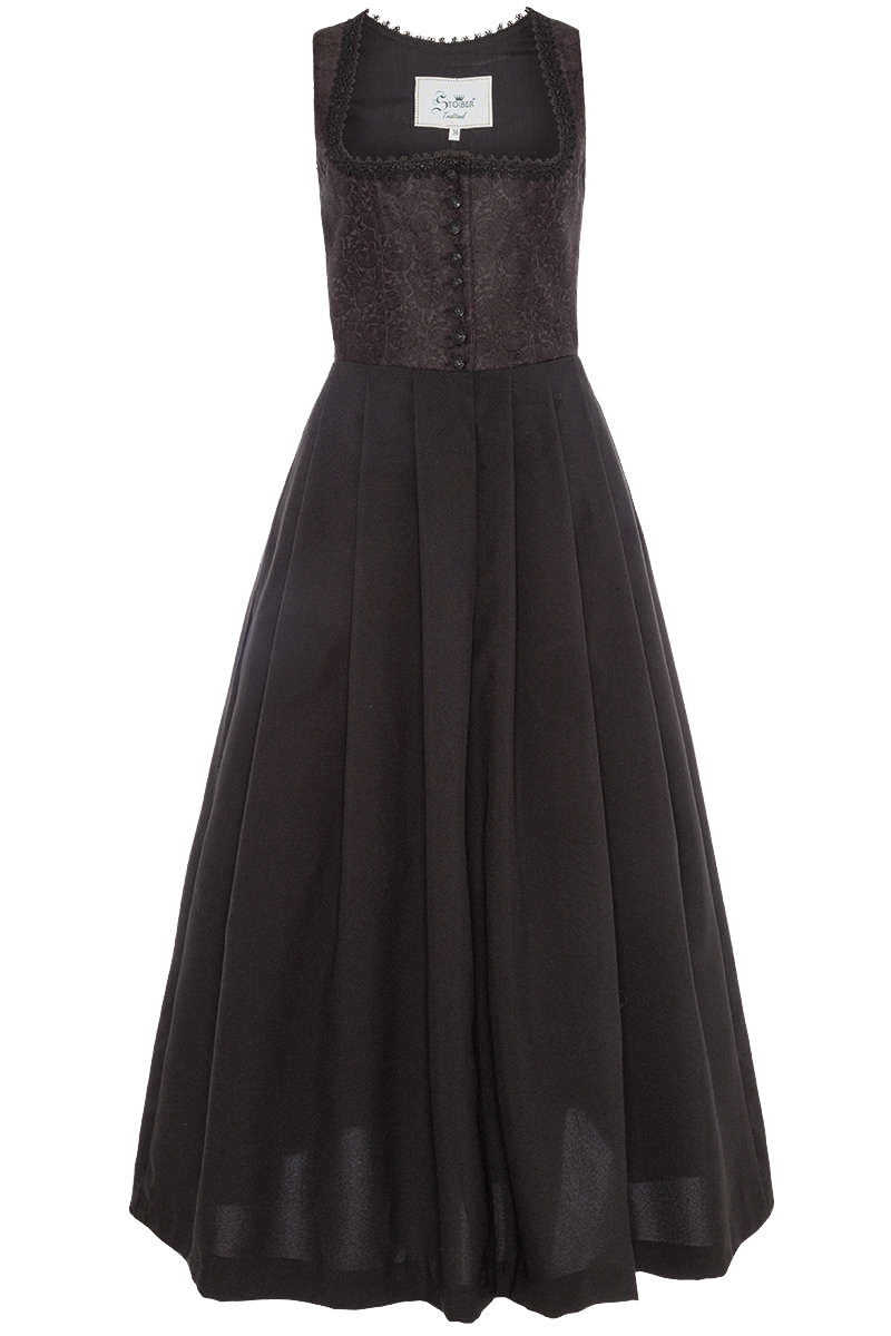 Das schwarze Dirndlkleid von Stoiber ist das ideale Trachten-Basic für den Gastronomie- und Servicebereich. Schick, pflegeleicht und angenehm zu tragen ist es das perfekte Outfit für den harten Einsatz im Service. Mit passender Bluse und Schürze kombiniert lässt sich das Corporate Design Ihres Unternehmens bestens darstellen. Das Mieder ist am Ausschnitt mit einer schwarzen Spitzenborte besetzt und wird mittig mit einer Knopfleiste geschlossen. Der knöchellange Rock ist 95 cm lang und besitzt zwei praktische Einschubtaschen.
