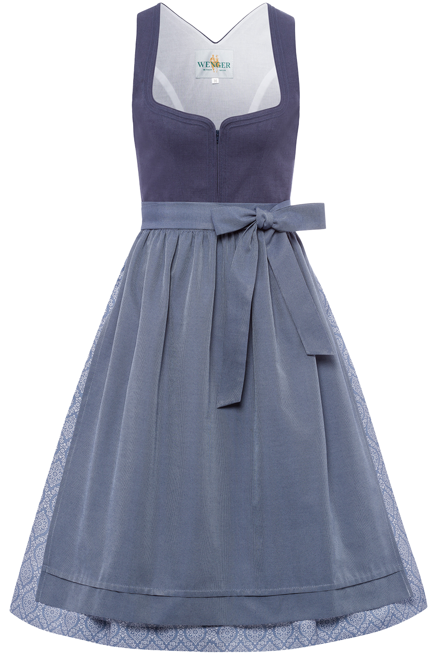 Mit dem langen Dirndl MILLY von Wenger setzen Sie auf stilvolle Tracht und hochwertige Materialien. Das Miederoberteil aus 100 % Leinen begeistert durch seine klassische Leinenwebstruktur, elegante Ziernähte und einen charmanten Herzausschnitt vorn, während der V-Ausschnitt hinten für eine moderne Note sorgt. Der verdeckte Reißverschluss in der vorderen Mitte fügt sich dezent ins Gesamtbild ein. Für besten Tragekomfort ist das Mieder mit reiner Baumwolle abgefüttert.