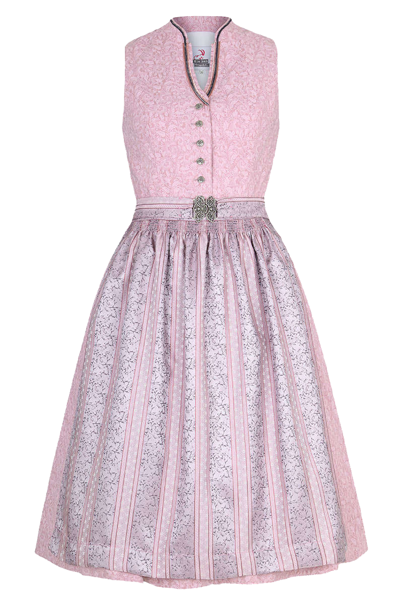 Baumwolldirndl hochgeschlossen mit gestreifter Broschenschürze