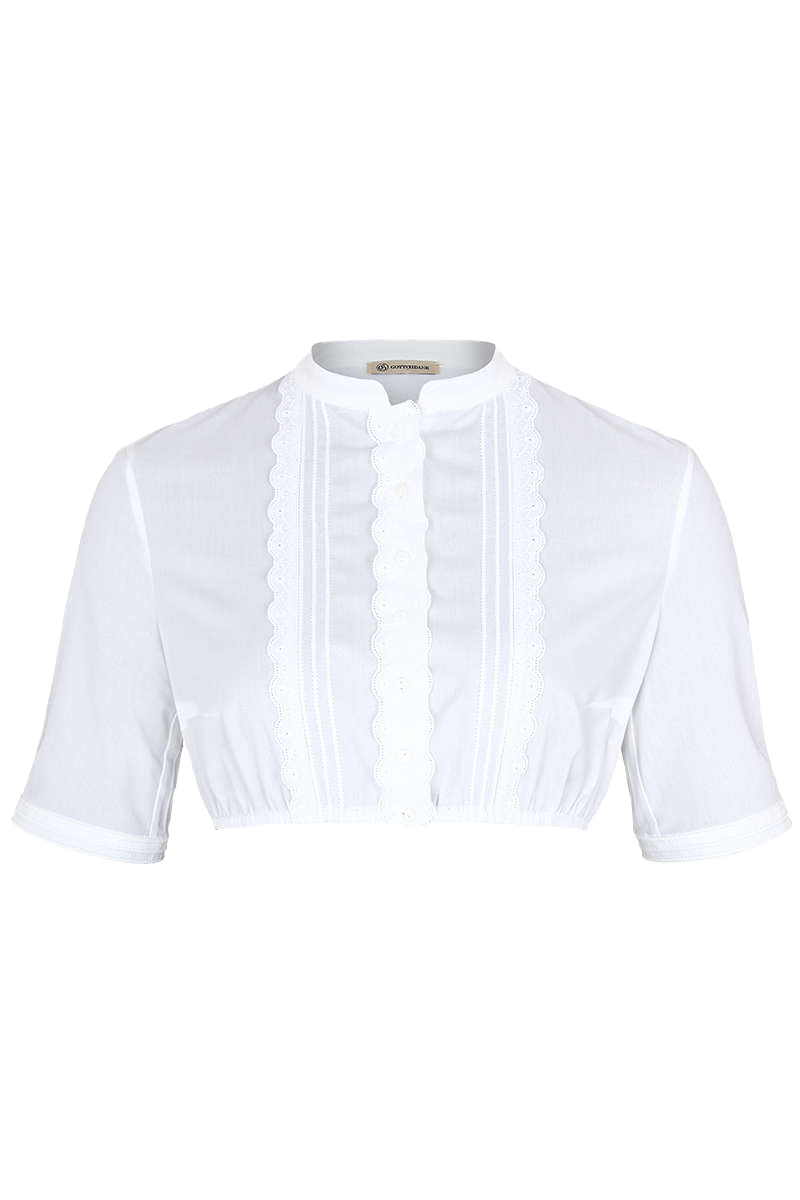 Dirndlbluse hochgeschlossen mit Spitzenborte