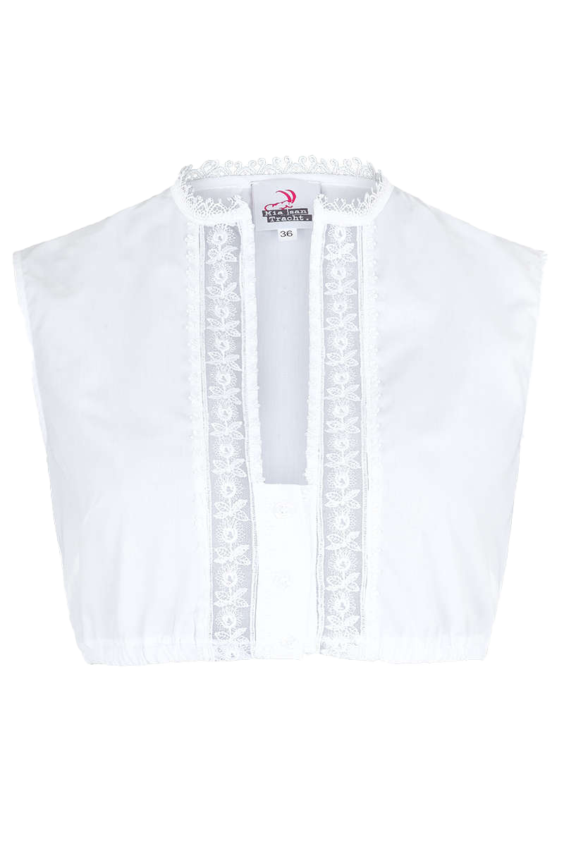 Hochgeschlossene Dirndlbluse ohne Ärmel weiss
