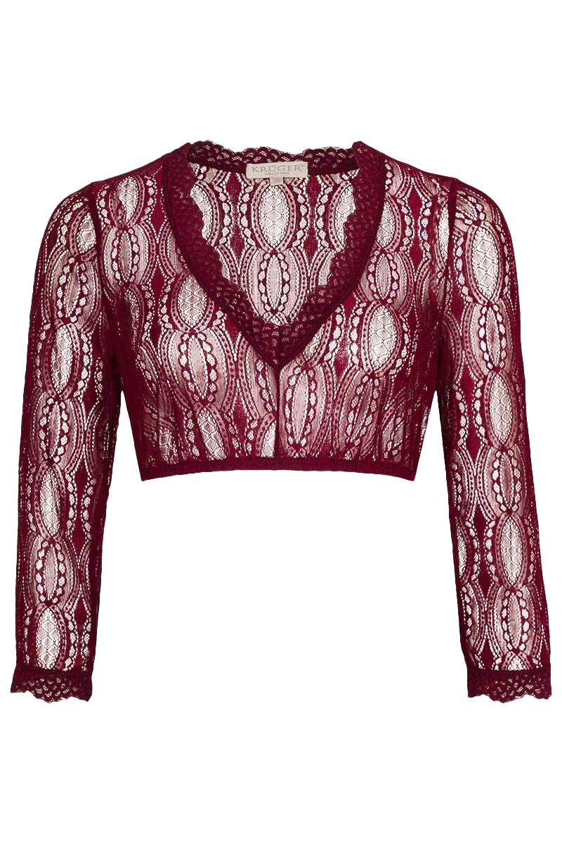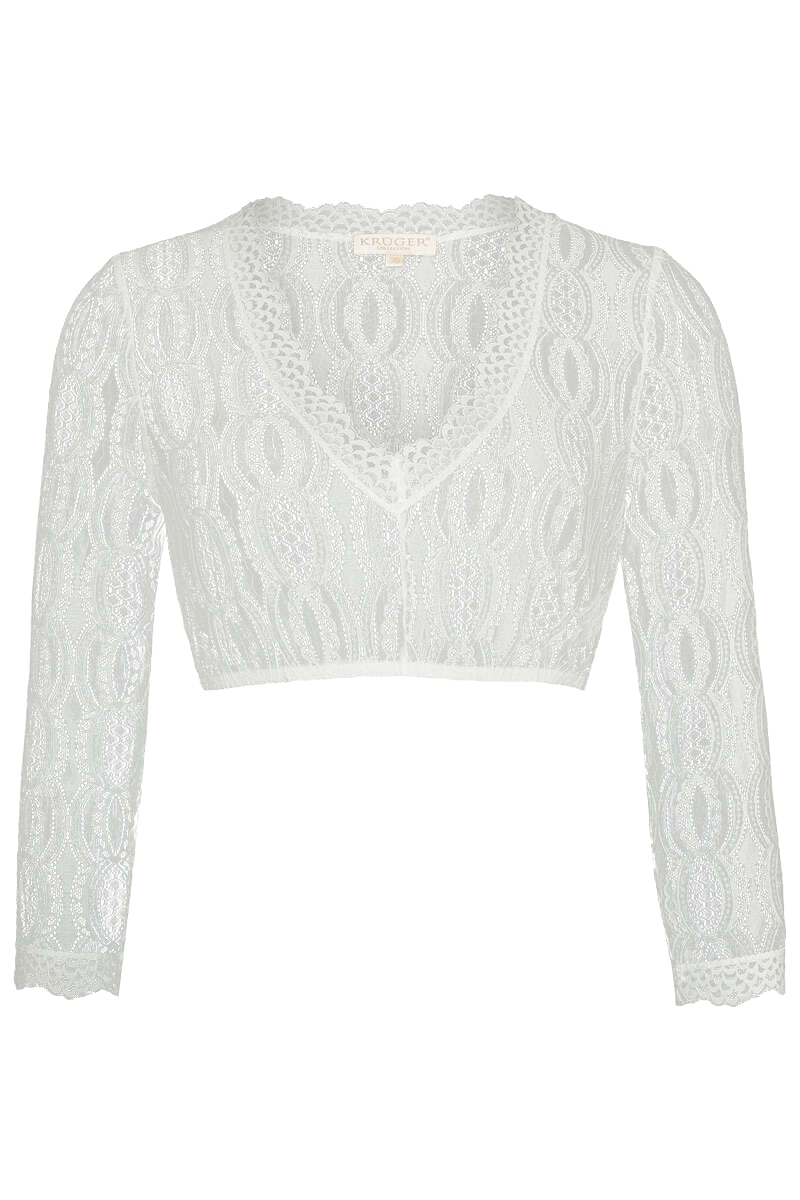Die schöne Dirndlbluse aus transparenter Spitze sorgt mit dem hübschen V-Ausschnitt und der Spitze für einen romantischen Look und lässt Sie strahlen.Die Bluse mit elegantem V-Ausschnitt ist aus einer angenehmen leicht transparenten Spitze gefertigt, die sich perfekt an die Figur anpasst. Das geometrische Muster der Spitze ist ein wahrer Hingucker. Der Gummizug am Saum sorgt für einen optimalen Sitz. Die ¾ langen Ärmel runden das Gesamtbild harmonisch ab und sorgen für eine edle Note.