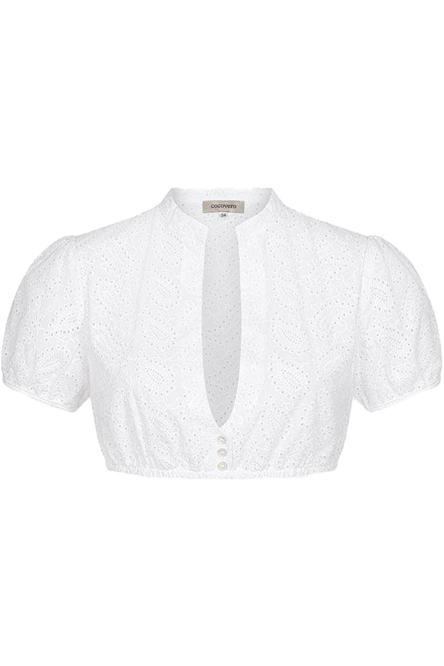 Dirndlbluse mit Lochstickerei und Puffärmel