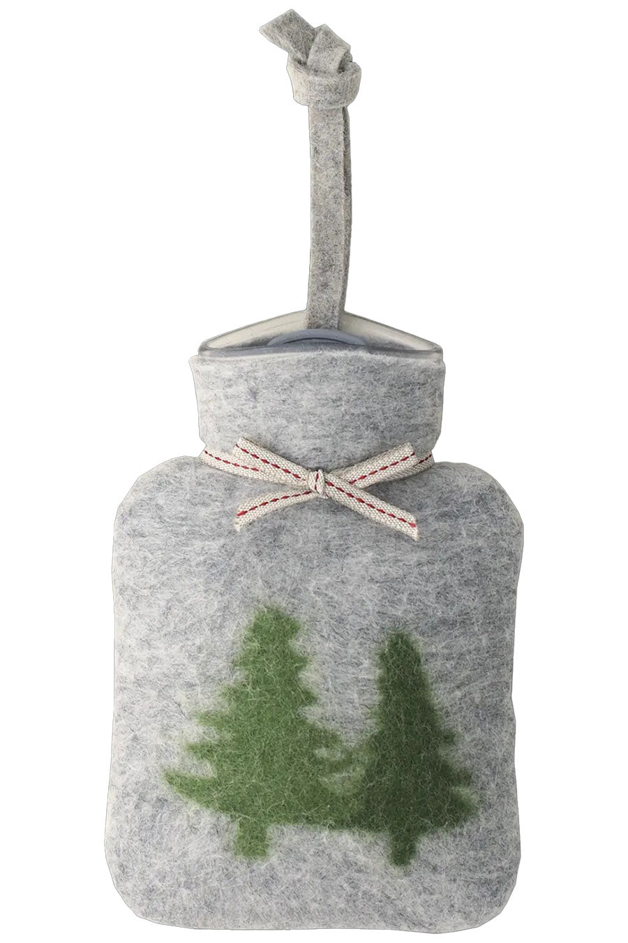 Wollfilz-Mini-Wärmflasche mit Tannenbäumen