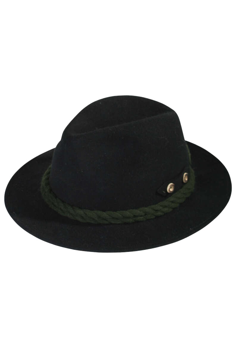 Dieser klassische Trachtenhut ist nicht nur zur Tracht ein schöner und praktischer Blickfang, auch im Alltag kann dieser Hut wunderbar getragen werden. Dieses Modell ist wunderschön verziert mit zwei Knöpfen in Hirschhorn-Optik. Hutgarnitur: doppelte Kordel in dunkelgrün