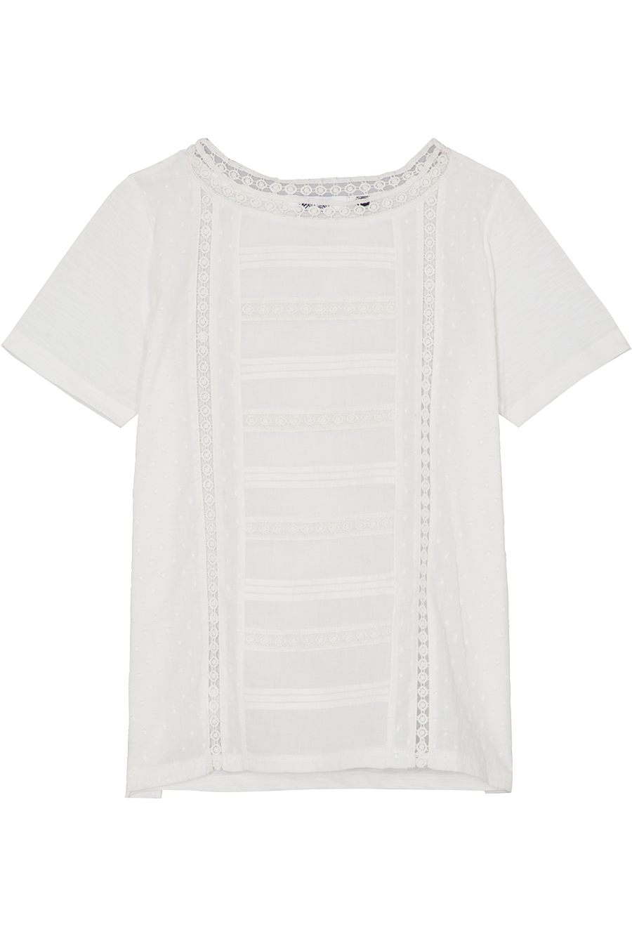 Das Damen T-Shirt FELIPA von Hangowear besticht durch sein charmantes eingewebtes Punktedesign und liebevolle Verarbeitung. Biesen sowie bestickte, teils transparente Einsätze im Vorderteil verleihen dem Shirt eine feminine, leicht verspielte Note. Eine feine Stickborte am Rundhalsausschnitt rundet das Design harmonisch ab.