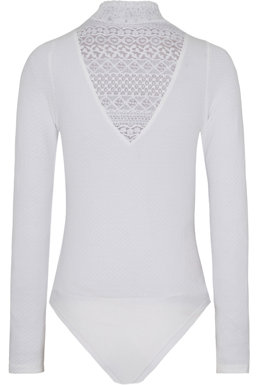 Unterlegt ist der Body mit einem weichen, blickdichten Stoff aus Viskose und Elasthan, der höchsten Komfort bietet. Das Höschenteil aus anschmiegsamem Jersey mit praktischem Druckknopfverschluss im Schritt sorgt zusätzlich für einen perfekten Sitz.