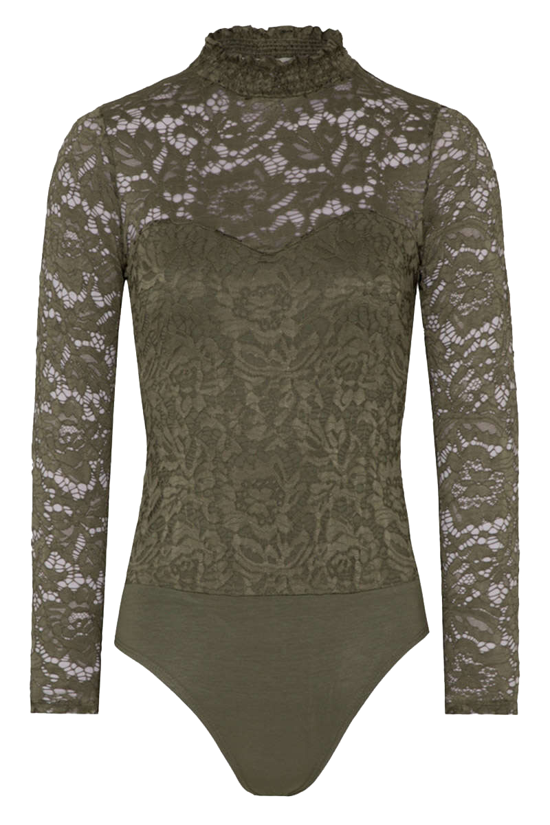 FILIZ von Hangowear ist ein romantischer Spitzenbody in Oliv mit langen Ärmeln und ein Allrounder im Kleiderschrank. Mit einem Trachtenrock ist er die perfekte Alternative zum Dirndl, aber auch im Alltag zu Jeans oder Hosen ist er ein echter Hingucker.Die Blümchenspitze wirkt besonders edel. Der Body ist mit einem blickdichten, weichen Material aus Viskose und Elasthan unterlegt, wodurch er sehr angenehm zu tragen ist und sich perfekt an den Körper anschmiegt. Der hochgeschlossene Ausschnitt ist mit einem elastischen Kragen versehen. Die durchsichtigen langen Ärmel und der durchsichtige Rücken in V-Form durch die Spitze verleihen dem Body eine feminine Eleganz, perfekt für festliche Anlässe, bei denen Sie mit dem Trachtenbody glänzen können.