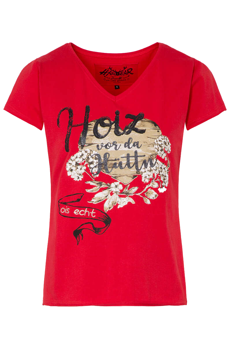 Damen Trachtenshirt 'Hoiz vor da Hüttn - ois echt'