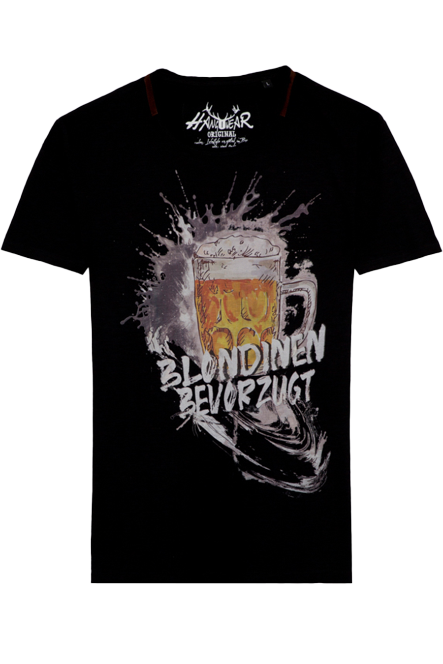Das Herren-T-Shirt GRISCHA von hangOwear sorgt mit seinem humorvollen Design garantiert für Aufmerksamkeit. Der großflächige Print mit Maßkrug und dem Schriftzug 'Blondinen bevorzugt' macht das Shirt zu einem echten Hingucker mit Augenzwinkern.
