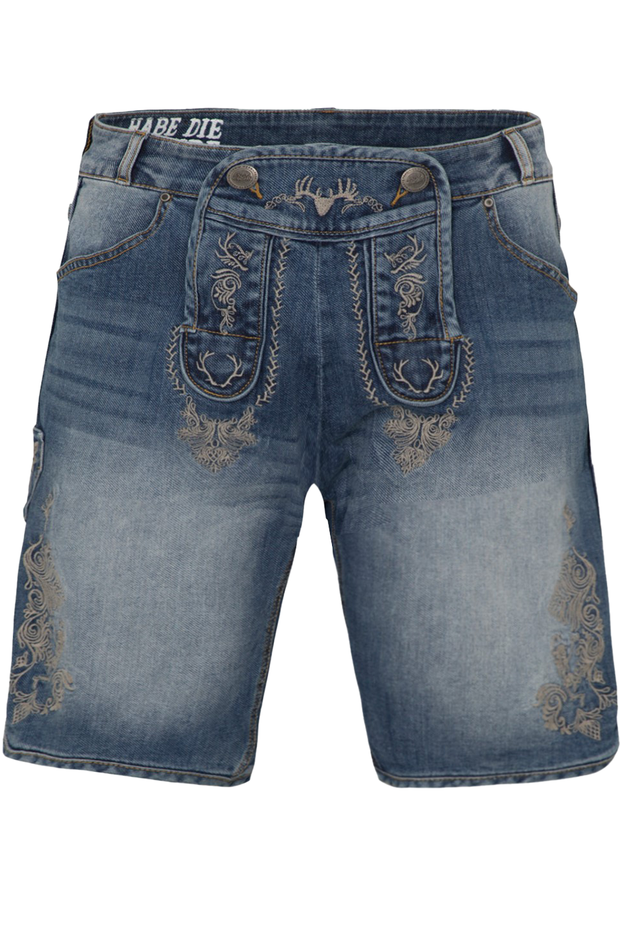 Die Trachten-Jeans HENRRI BERMUDA DENIM von hangOwear ist die moderne Alternative zur klassischen Lederhose und überzeugt mit authentischem Trachtenlook. Gefertigt aus elastischem Denim, bietet sie angenehmen Sitz und volle Bewegungsfreiheit – ideal für Volksfeste, Feiern oder den Alltag.