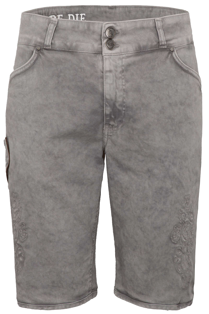 HECTOR von HangOWear ist eine kurze Trachtenjeans aus Denim. Das klassische Design einer Five-Pocket-Jeans wird mit den Accessoires einer bayerischen Lederhose wie Messertasche, Eichenblattstickereien am Bein und den Seitennähten mit eingearbeiteten Kedern zu einem eigenständigen Stil vereint. Das Hellgrau und Schlamm erhältlich.