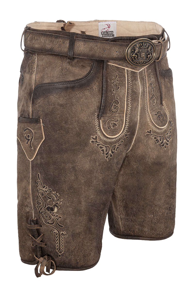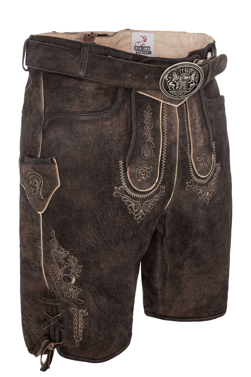 - Herren Lederhose kurz Wildbock mit Gürtel und Träger