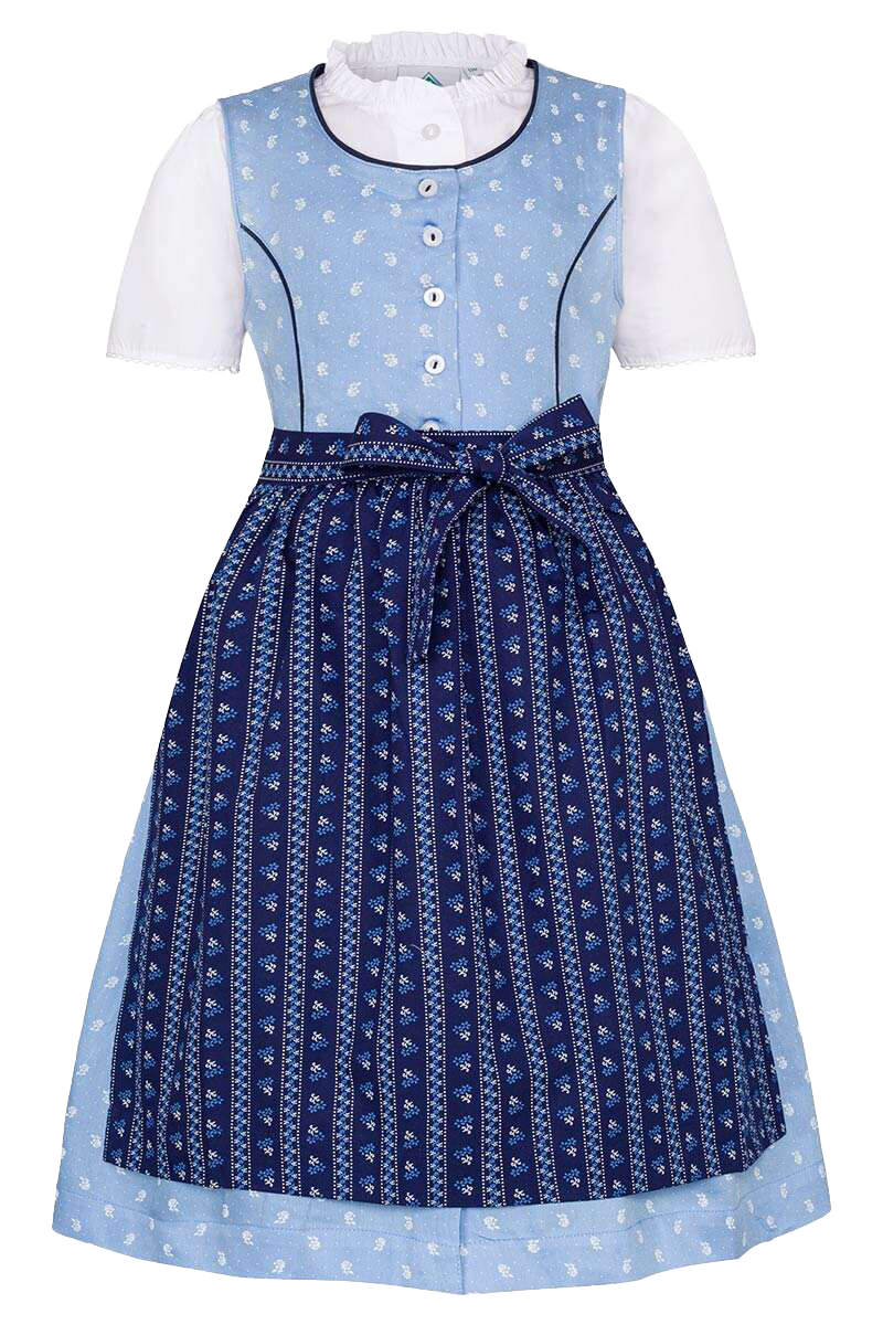 Das Kinderdirndl von Isar-Trachten besticht durch seine hochwertige Qualität aus reiner Baumwolle und sein traditionelles Design.Das Oberteil mit traditioneller Wiener Naht und der Rock sind mit einem hübschen Blumenmuster verziert. Der Ausschnitt und die Wiener Nähte werden durch die dunkelblaue Paspelierung besonders betont. Besonders edel wirkt die Knopfleiste mit Knöpfen in Perlmuttoptik, mit der das Dirndl geschlossen wird.Die schlichte Schürze mit klassischem Blumenrankenmuster wird zu einer süßen Schleife gebunden und bildet den passenden Kontrast zum geblümten Kleid. Ergänzt wird das Dirndl durch eine kurzärmelige Bluse mit Rundhalsausschnitt und Rüschen, die an den Ärmelenden mit edler Spitze verziert ist.Bei der Größe 116 beträgt die Rocklänge ca. 47 cm.