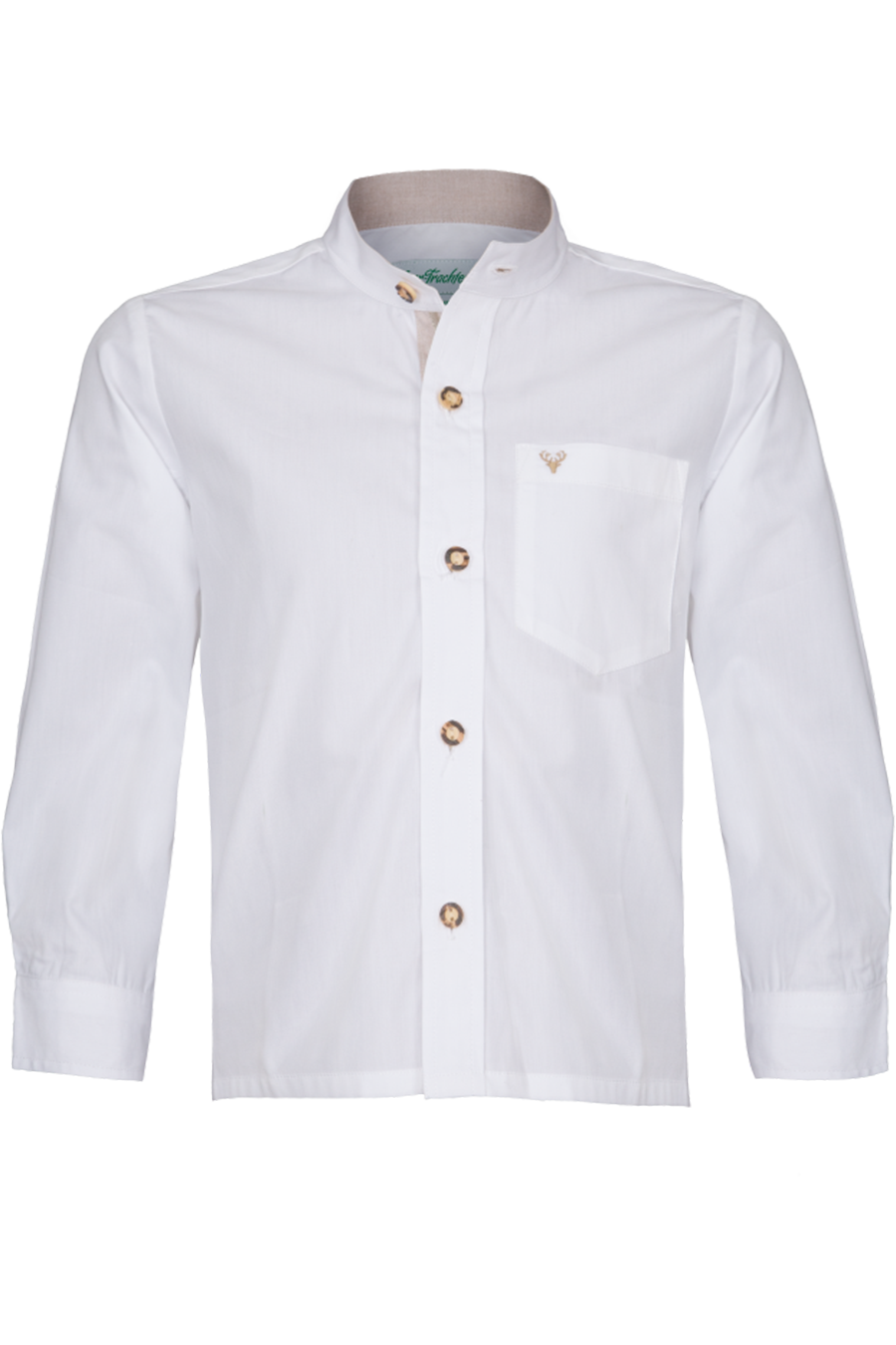 Fesches Kindertrachtenhemd von Isar-Trachten – perfekt für Buam mit Stil! Das klassische Hemd mit kleinem Stehkragen begeistert durch liebevolle Details wie Knöpfe in Hirschhornoptik, eine aufgestickte Hirschkopfverzierung auf der Brusttasche sowie kontrastfarbige Akzente an Kragen, Manschetten und Knopfleiste innen. Aus 100 % Baumwolle gefertigt, bietet das Hemd hohen Tragekomfort – ideal für Feste, Familienfeiern oder den Alltag in Tracht. Ob zur Lederhose oder Jeans: ein vielseitiger Klassiker mit traditionellem Charme!