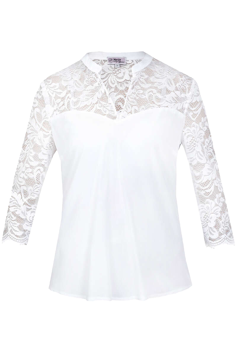 Damen Blusenshirt mit V-Ausschnitt und Spitzenbesatz